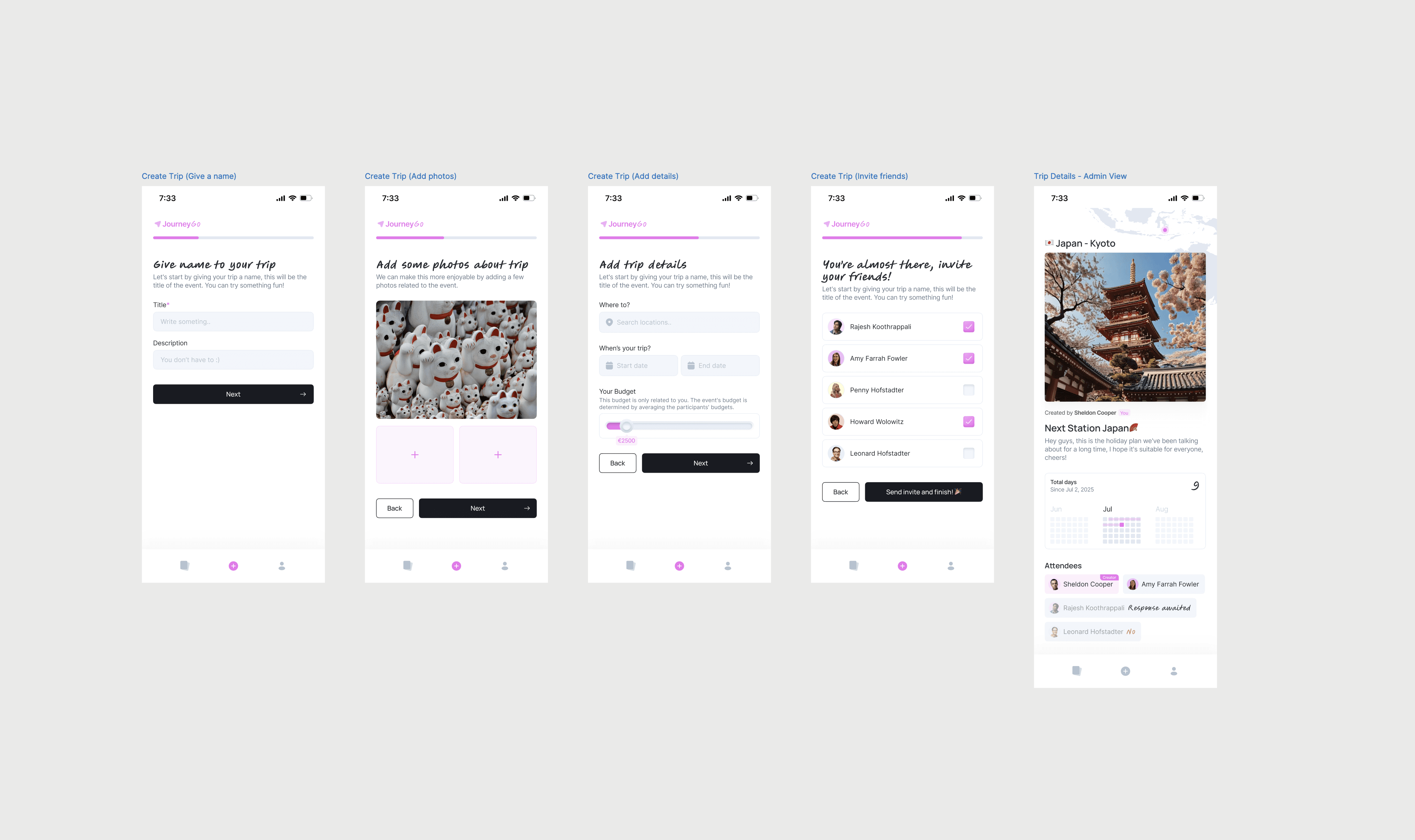 The design and development process of the app was fully carried out by me. I defined the core idea, built the information architecture, designed all user flows and created a complete UI system that supports both individual planning and group coordination.